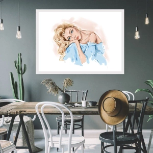 Plakat - Rozmarzona w błękicie - 40x30 cm