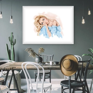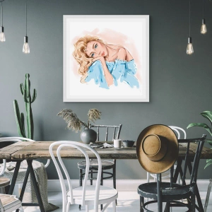 Plakat w białej ramie - Rozmarzona w błękicie - 50x50 cm