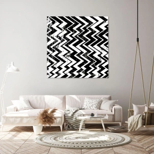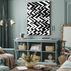 Obraz na płótnie - Czarno-biały wzór w zygzaki z artystycznymi przetarciami - 120x50cm - Zyg-białe, zag-czarne - Nowoczesna dekoracja ścienna do salonu i sypialni ARTTOR