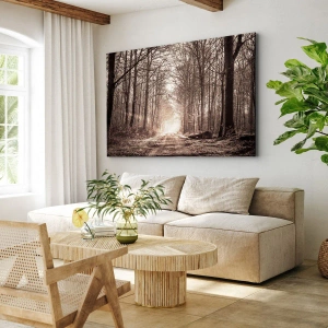 Obraz na płótnie - Leśna ścieżka wśród drzew w odcieniach sepii - 100x70cm - Leśna katedra - Nowoczesna dekoracja ścienna do salonu, kuchni i sypialni ARTTOR