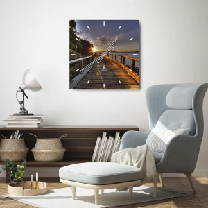 Zegar ścienny - Pomost nad wodą o zachodzie słońca - 30x30cm - Iść, ciągle iść w stronę słońca - Nowoczesna dekoracja ścienna do salonu, kuchni i sypialni ARTTOR