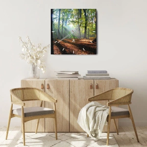 Zegar ścienny - Promienie słońca w jesiennym lesie - 30x30cm - Blaski i cienie - Nowoczesna dekoracja ścienna do salonu, kuchni i sypialni ARTTOR