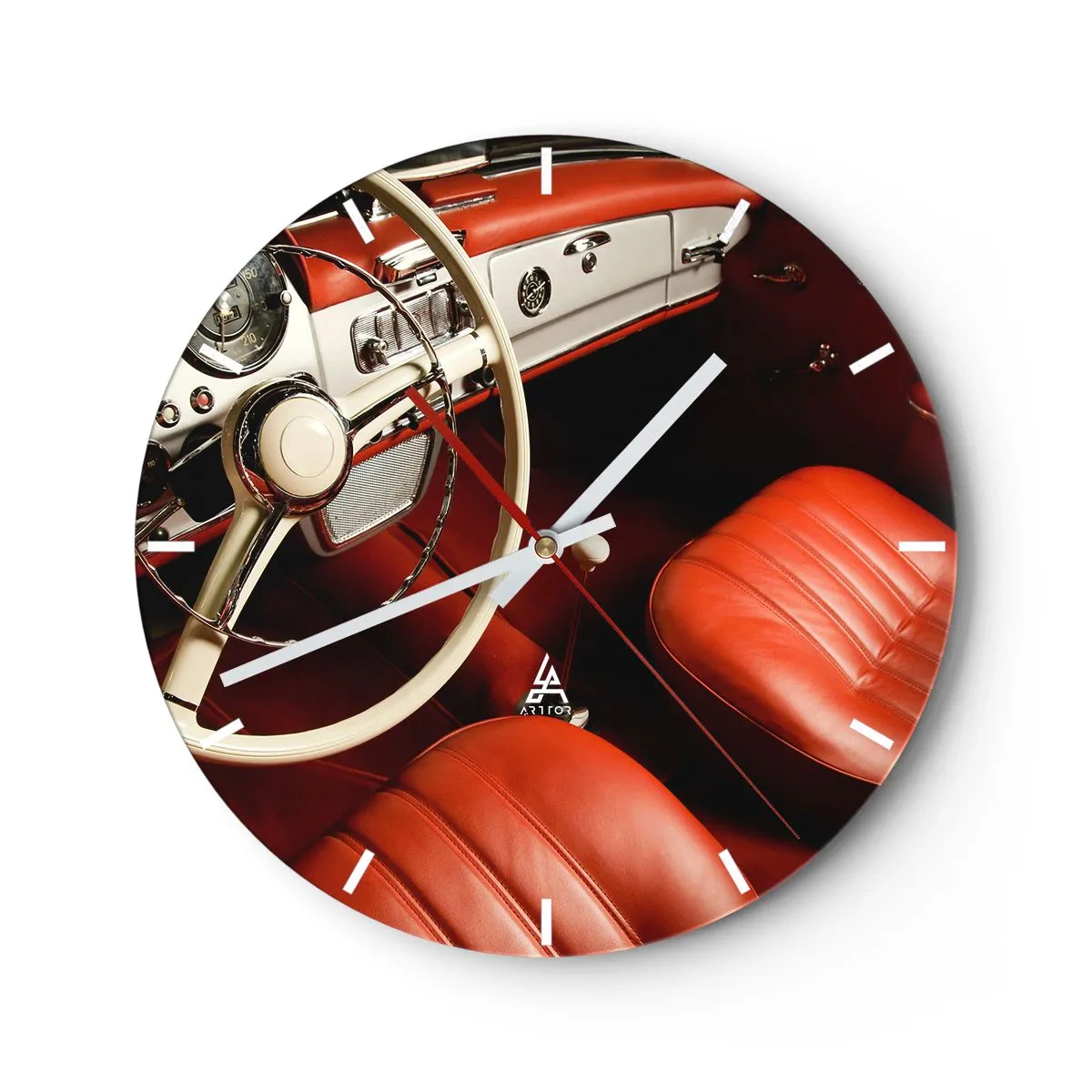 Zegar ścienny - Luksus w stylu vintage - Klasyczne wnętrze samochodu z czerwonymi siedzeniami