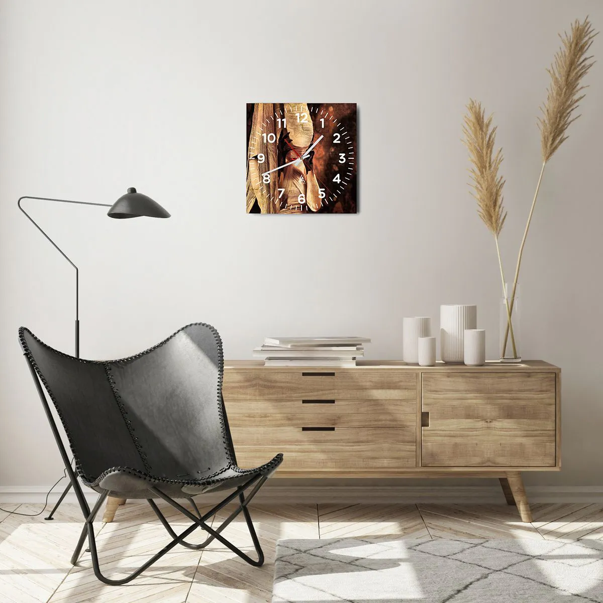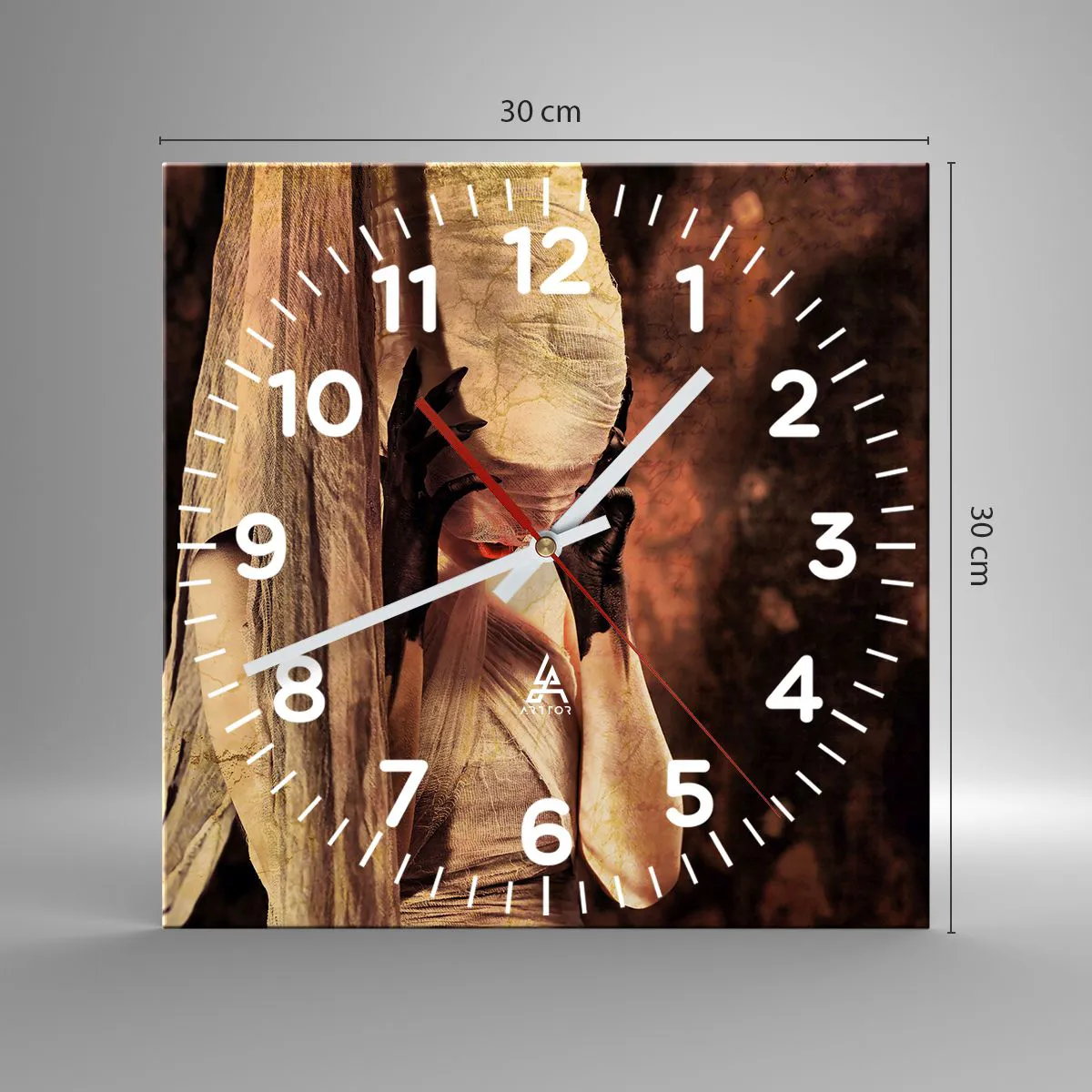 Zegar wykonany jest z wytrzymałego szkła o grubości 4mm. Szkło zachowuje naturalne barwy wydruku