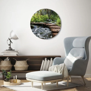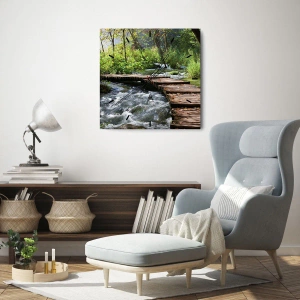 Zegar ścienny - Drewniany pomost nad rwącym strumieniem otoczony zielenią lasu. - 30x30cm - Nad pienistą kaskadą - Nowoczesna dekoracja ścienna do salonu i sypialni ARTTOR