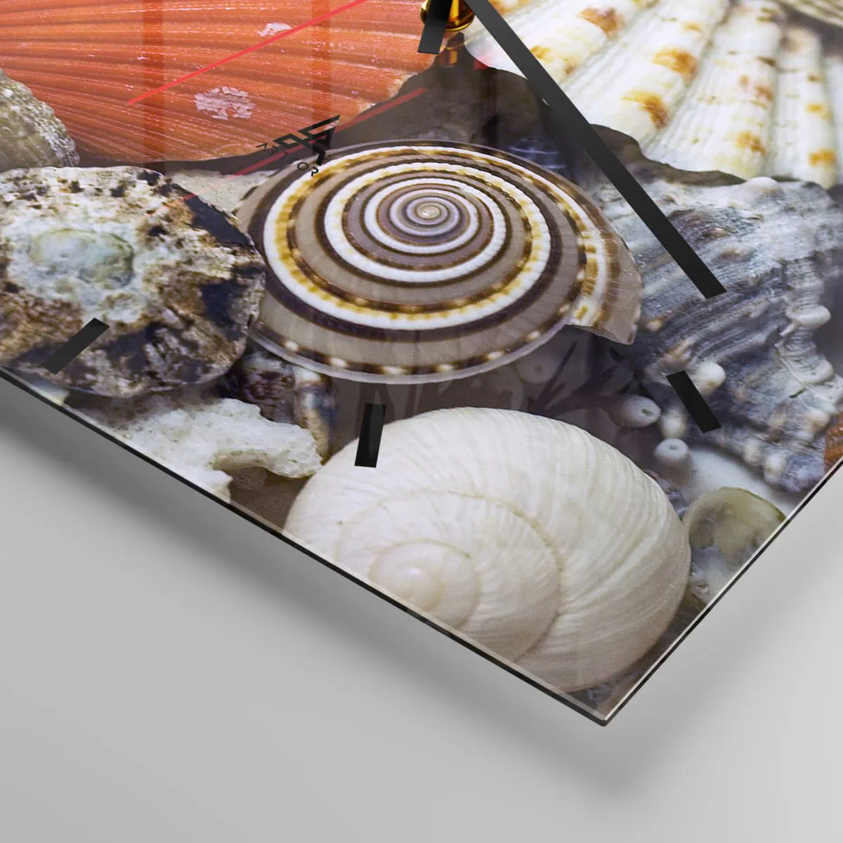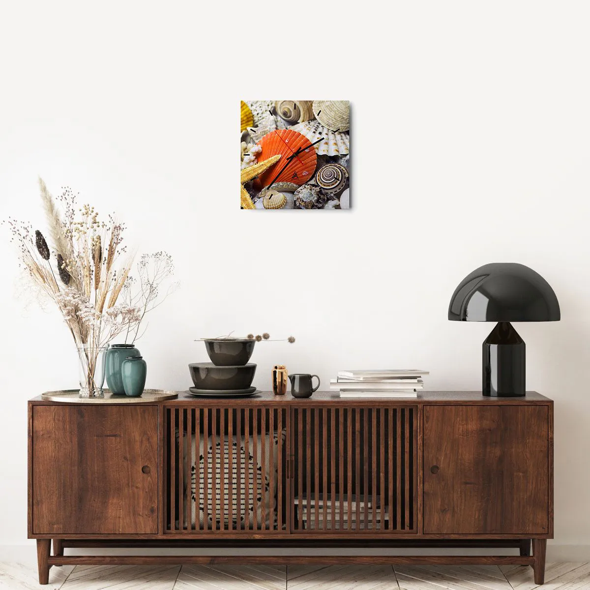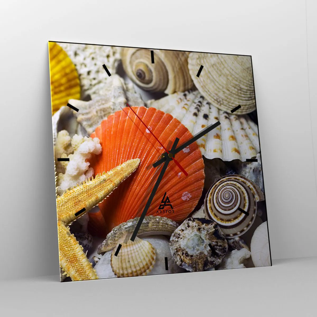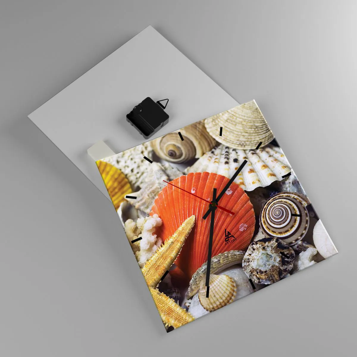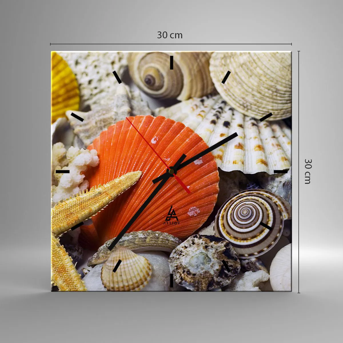 Zegar ścienny - Muszle i rozgwiazda w kompozycji morskiej - 30x30cm - Skarby oceanu - Nowoczesna dekoracja ścienna do salonu i sypialni ARTTOR