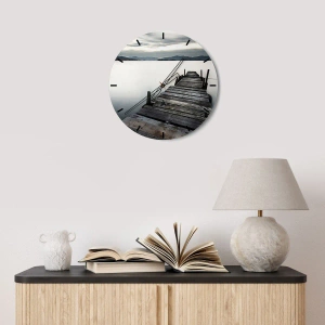 Zegar ścienny - Drewniany pomost prowadzący w stronę spokojnego jeziora - 30x30cm - Zanurzyć się w spokoju - Nowoczesna dekoracja ścienna do salonu i sypialni ARTTOR