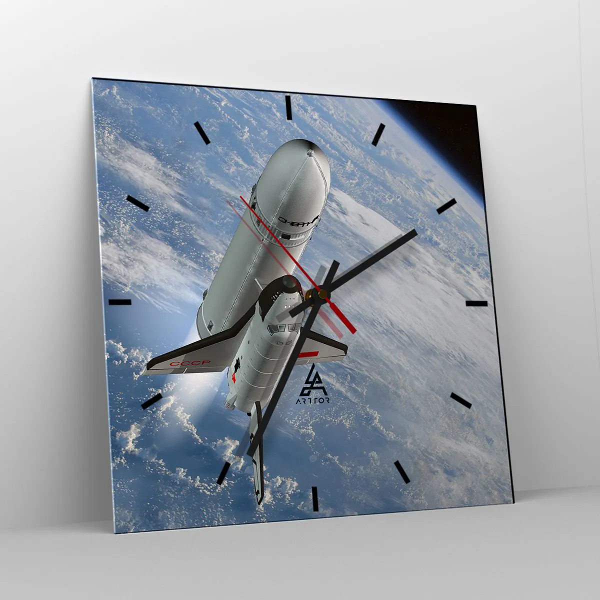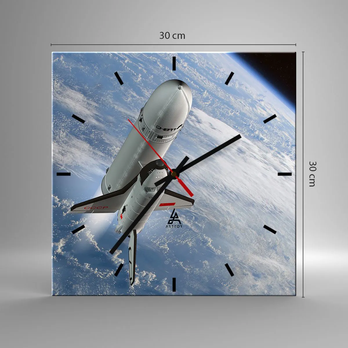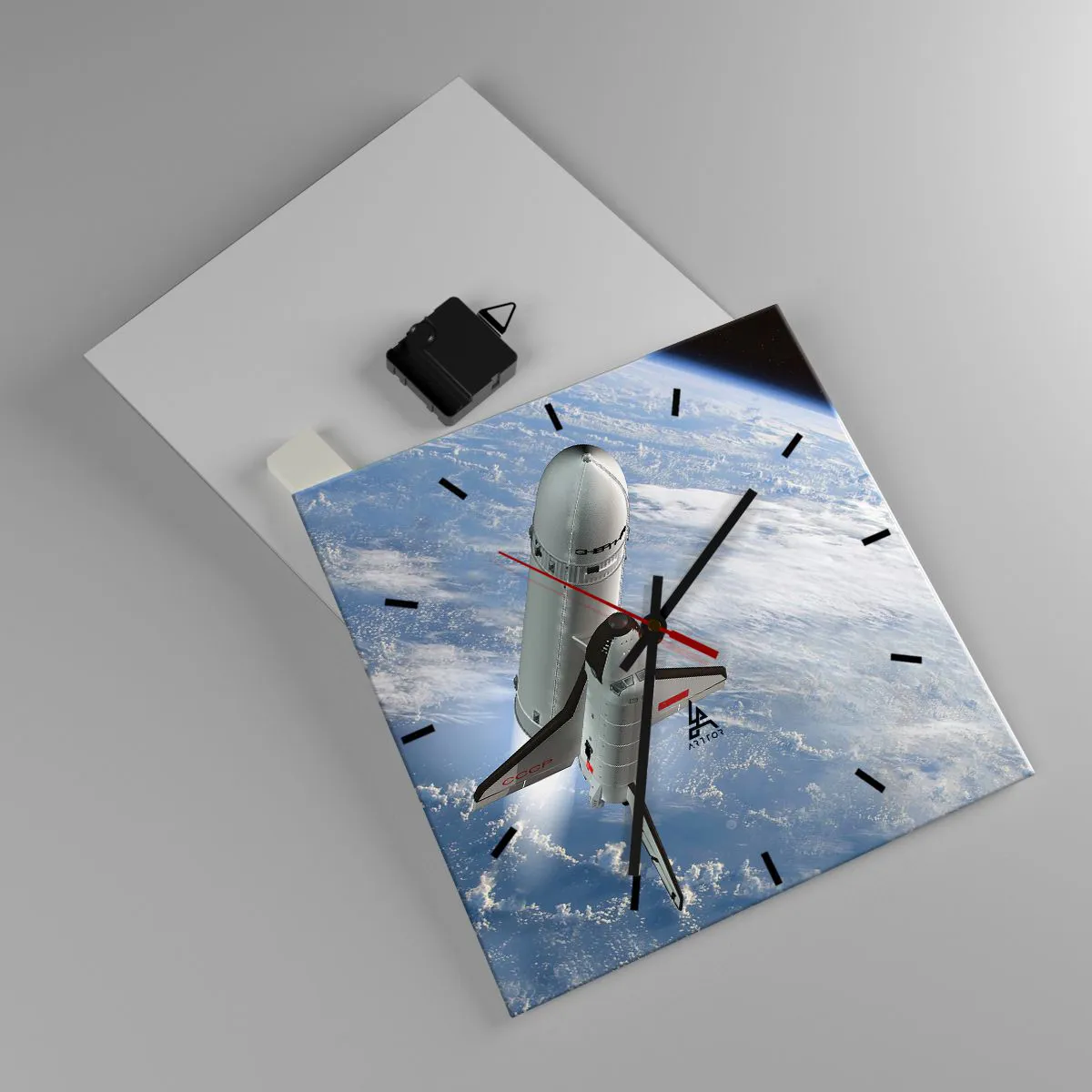 Zegar ścienny - Wznosząca się rakieta kosmiczna na tle Ziemi - 30x30cm - Kosmiczne wniebowstąpienie - Nowoczesna dekoracja ścienna do salonu i sypialni ARTTOR