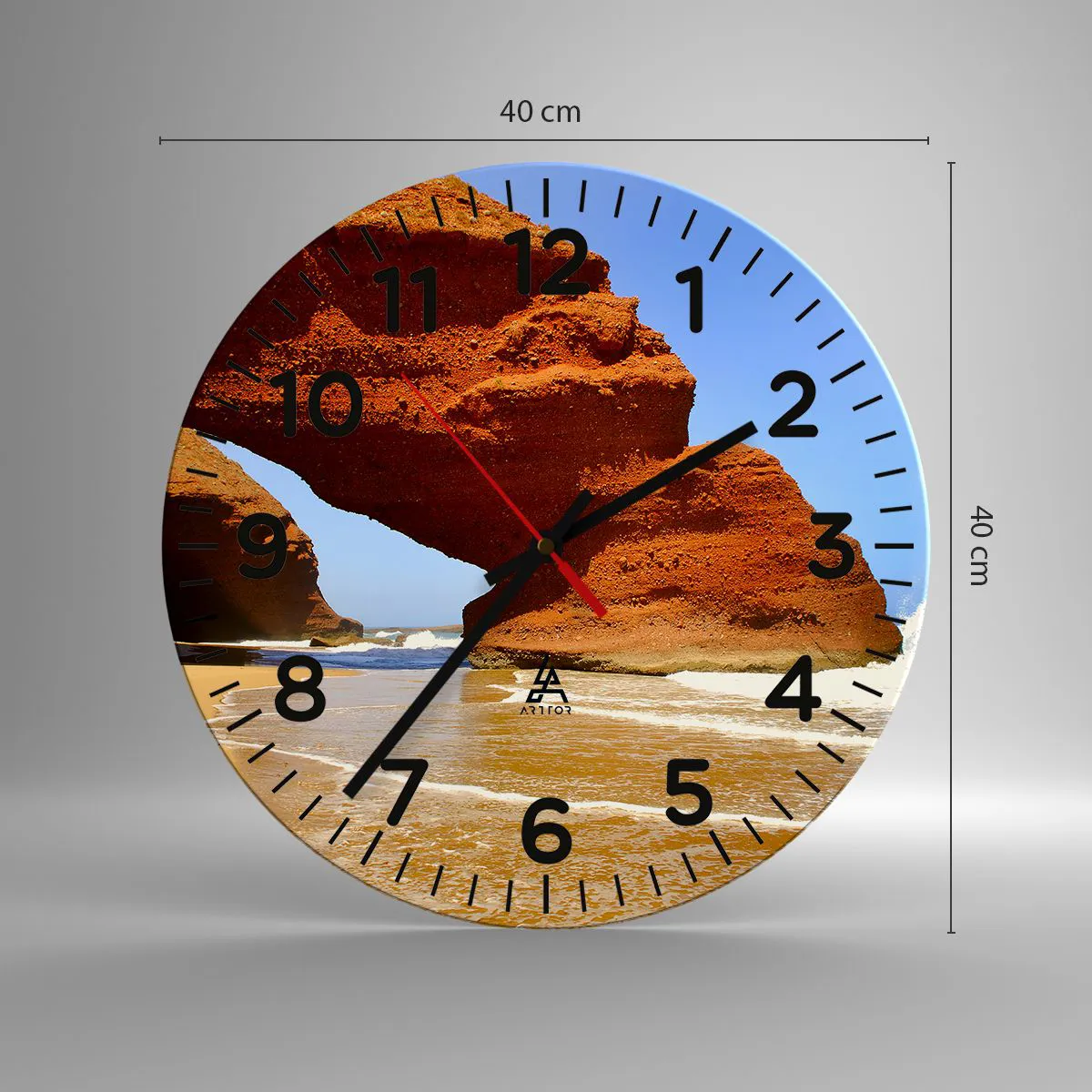 Zegar wykonany jest z wytrzymałego szkła o grubości 4mm. Szkło zachowuje naturalne barwy wydruku
