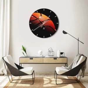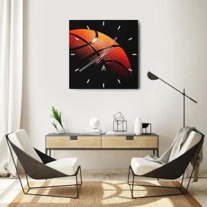 Zegar ścienny - Zbliżenie na piłkę do koszykówki na czarnym tle - 30x30cm - Piękna jak planeta - Nowoczesna dekoracja ścienna do salonu i sypialni ARTTOR