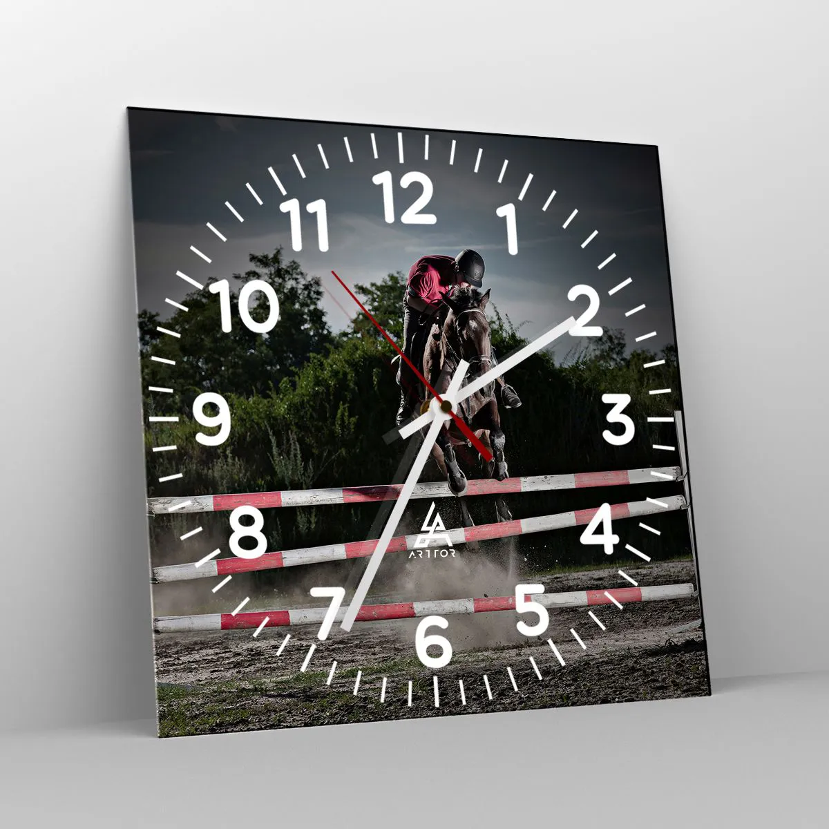 Zegar wykonany jest z bezpiecznego szkła o grubości 4mm. Technologia wykonania zegara jest zgodna z klasą bezpieczeństwa 2B2 według normy PN-EN 12600:2004, która gwarantuje wytrzymałość na uderzenia. Zegar na szkle jest gotowy do powieszenia – posiada metalową zawieszkę zamocowaną z tyłu zegara oraz piankowy dystans regulujący równomierny odstęp zegara od ściany. Zegar posiada cichy mechanizm płynący zasilany baterią 1,5V - bateria AA (bateria nie jest umieszczana w zestawie).