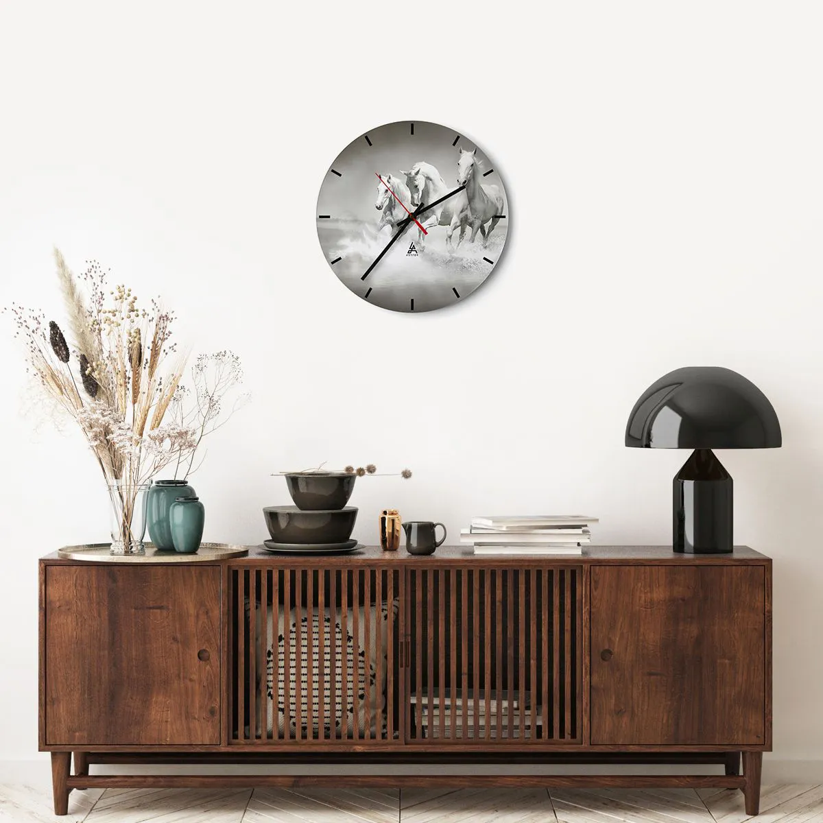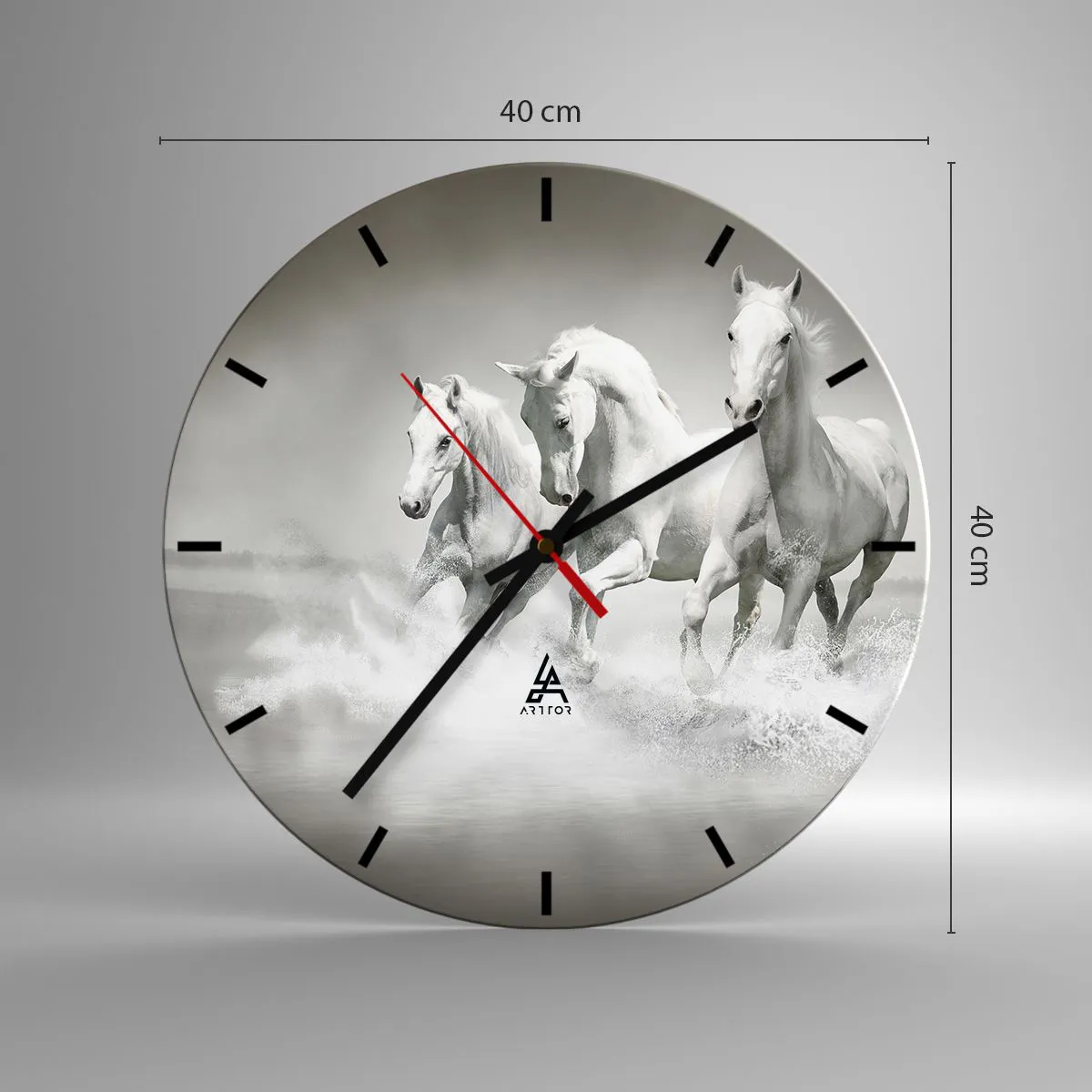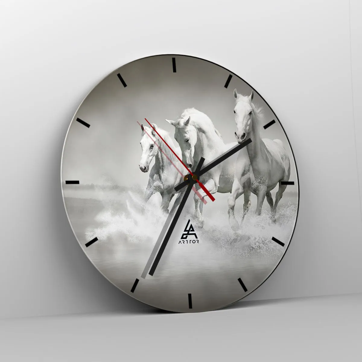 Zegar wykonany jest przy zastosowaniu nowoczesnych technologii druku, które gwarantują zachowanie naturalnych barw jak i wysokie nasycenie kolorów. Produkcja zegarów na szkle odbywa się wieloetapowo. Wysokiej jakości wydruk oraz dwie warstwy zabezpieczające poddawane są procesowi termicznego połączenia ze szkłem. Wykorzystujemy w tym celu innowacyjną technologię pieców do laminacji szkła w środowisku próżni.