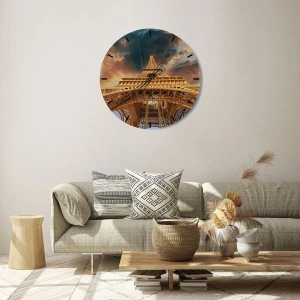 Zegar ścienny - Jak ludzkość sięgnęła nieba - Perspektywa Wieży Eiffla o zachodzie słońca
