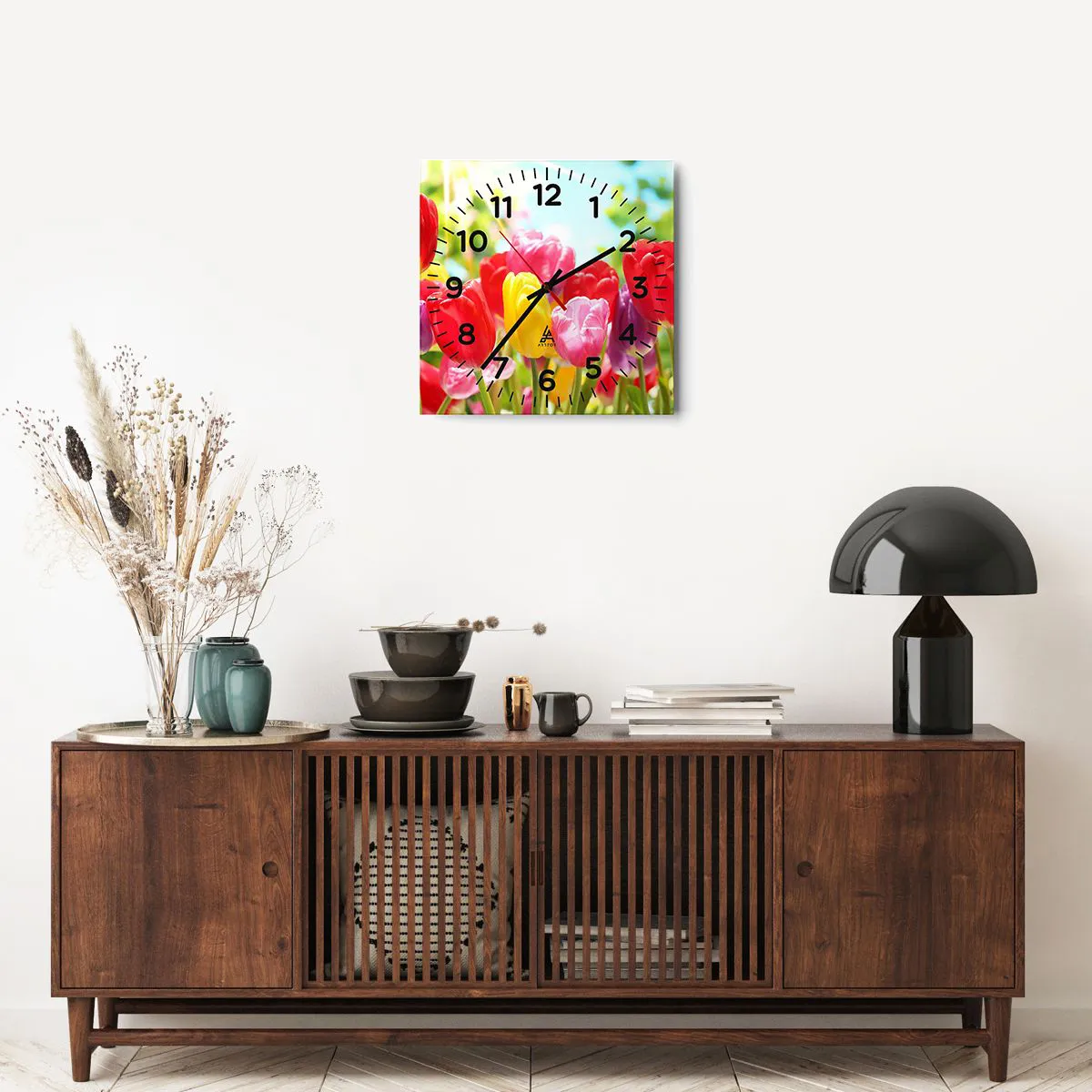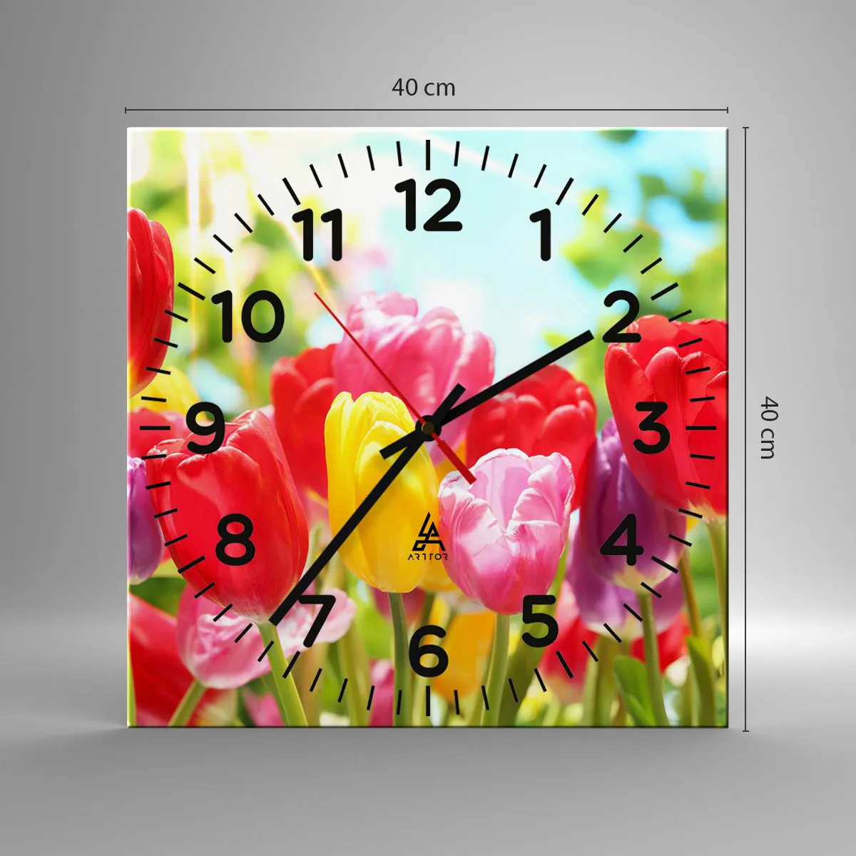 Zegar wykonany jest z wytrzymałego szkła o grubości 4mm. Szkło zachowuje naturalne barwy wydruku