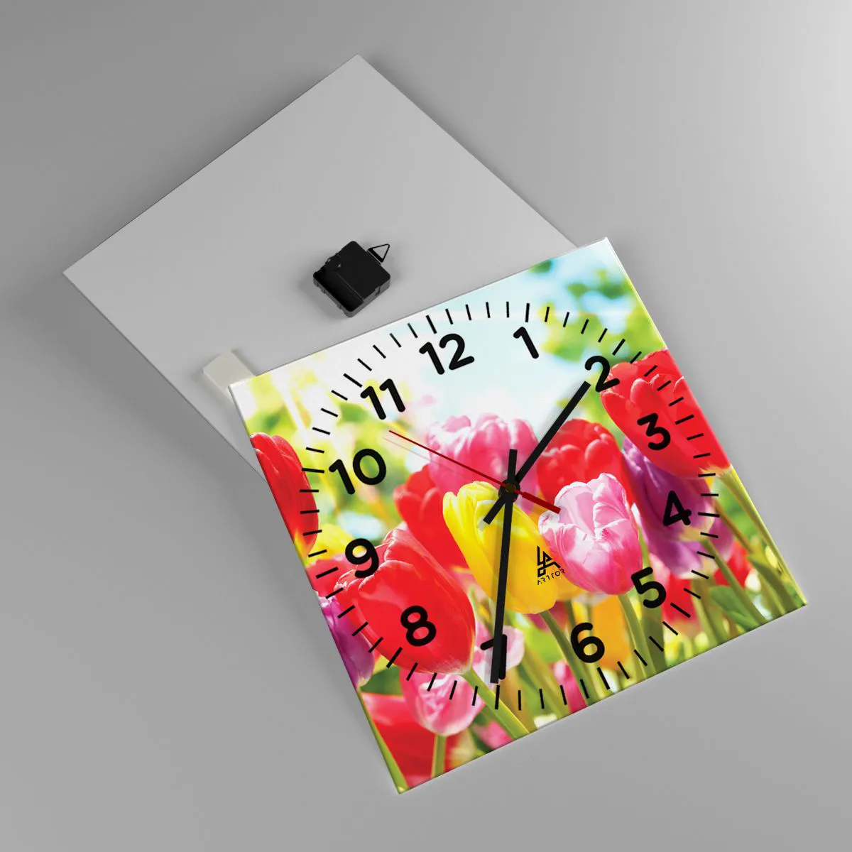 Zegar wykonany jest przy zastosowaniu nowoczesnych technologii druku, które gwarantują zachowanie naturalnych barw jak i wysokie nasycenie kolorów. Produkcja zegarów na szkle odbywa się wieloetapowo. Wysokiej jakości wydruk oraz dwie warstwy zabezpieczające poddawane są procesowi termicznego połączenia ze szkłem. Wykorzystujemy w tym celu innowacyjną technologię pieców do laminacji szkła w środowisku próżni.