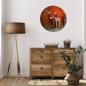 Zegar ścienny - Widzicie jakąś akację? - Żyrafy na tle ceglanej ściany