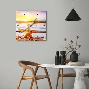 Zegar ścienny - Rozgwiazda na plaży o zachodzie słońca - 30x30cm - Morski podarunek - Nowoczesna dekoracja ścienna do salonu, kuchni i sypialni ARTTOR