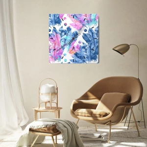 Zegar ścienny - Pióropusze w różu i błękicie - 30x30 cm
