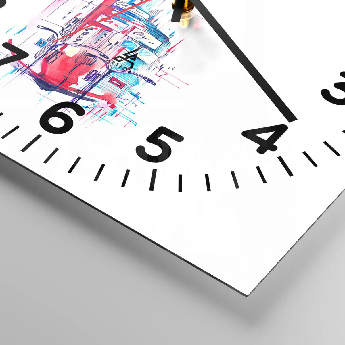 Zegar wykonany jest z bezpiecznego szkła o grubości 4mm. Technologia wykonania zegara jest zgodna z klasą bezpieczeństwa 2B2 według normy PN-EN 12600:2004, która gwarantuje wytrzymałość na uderzenia. Zegar na szkle jest gotowy do powieszenia – posiada metalową zawieszkę zamocowaną z tyłu zegara oraz piankowy dystans regulujący równomierny odstęp zegara od ściany. Zegar posiada cichy mechanizm płynący zasilany baterią 1,5V - bateria AA (bateria nie jest umieszczana w zestawie).