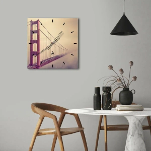 - Zegar ścienny z artystycznym motywem Mostu Golden Gate w delikatnej mgle. Stylowy i nowoczesny dodatek do wnętrz inspirowanych miejskim klimatem.
