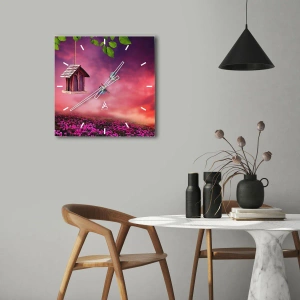 Zegar wykonany jest przy zastosowaniu nowoczesnych technologii druku, które gwarantują zachowanie naturalnych barw jak i wysokie nasycenie kolorów. Produkcja zegarów na szkle odbywa się wieloetapowo. Wysokiej jakości wydruk oraz dwie warstwy zabezpieczające poddawane są procesowi termicznego połączenia ze szkłem. Wykorzystujemy w tym celu innowacyjną technologię pieców do laminacji szkła w środowisku próżni.