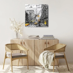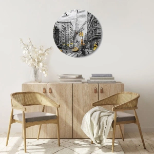 Zegar ścienny - Nowojorska ulica z żółtymi akcentami - 30x30cm - Nowojorska opowieść - Nowoczesna dekoracja ścienna do salonu i sypialni ARTTOR