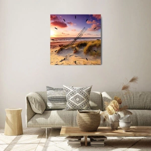 Zegar ścienny - Plaża z trawami i zachód słońca nad spokojnym morzem - 30x30cm - Już latem pachnie powietrze - Nowoczesna dekoracja ścienna do salonu i sypialni ARTTOR