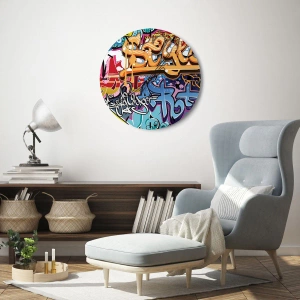 Zegar ścienny - Murale, murale, murale… - Okrągły zegar ścienny o niepowtarzalnym stylu graffiti. Dodatek idealny dla nowoczesnych wnętrz.
