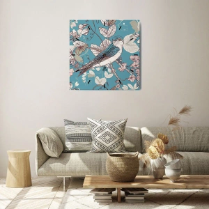 Zegar ścienny - W białodrzewiu ćwirnie i srebliście - 40x40 cm