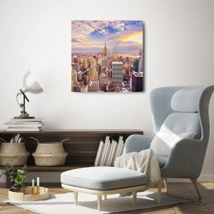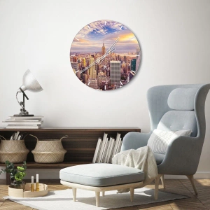 Zegar ścienny - Panorama nowoczesnego miasta z wieżowcami o zachodzie słońca - 30x30cm - Sięgnąć samych chmur - Nowoczesna dekoracja ścienna do salonu i sypialni ARTTOR