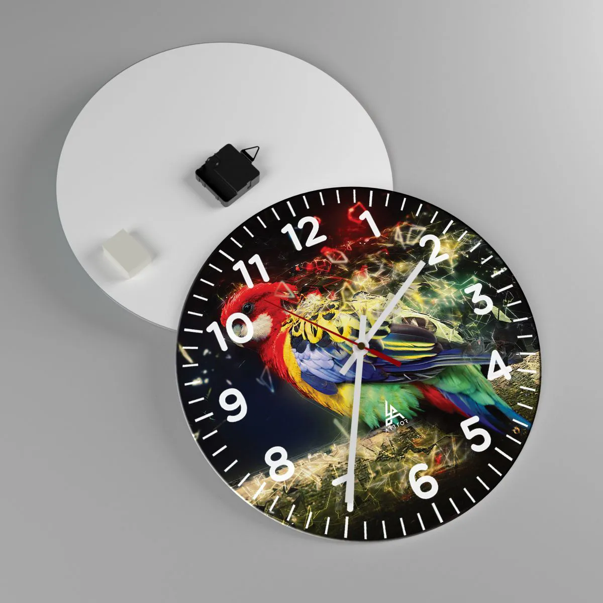 • Abstrakcja, Papuga, Ptak, Zwierzęta, Do biura, Do gabinetu, Do jadalni, Do przedpokoju, Do salonu, Do sypialni, Czarny, Czerwony, Niebieski, Żółty, Kolorowy , Okrągły