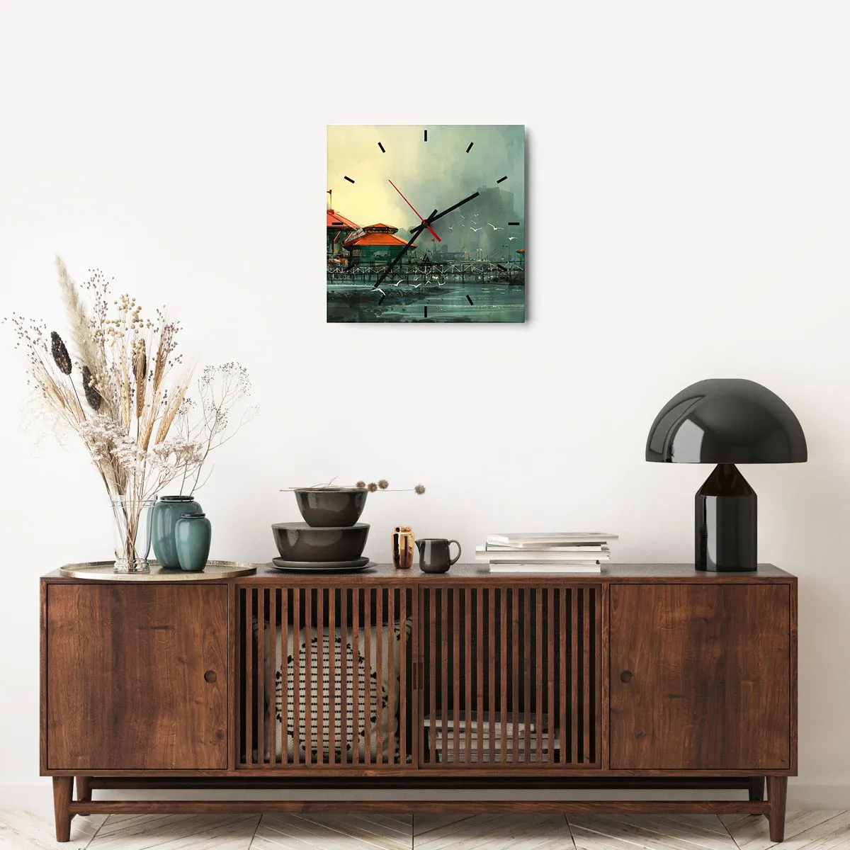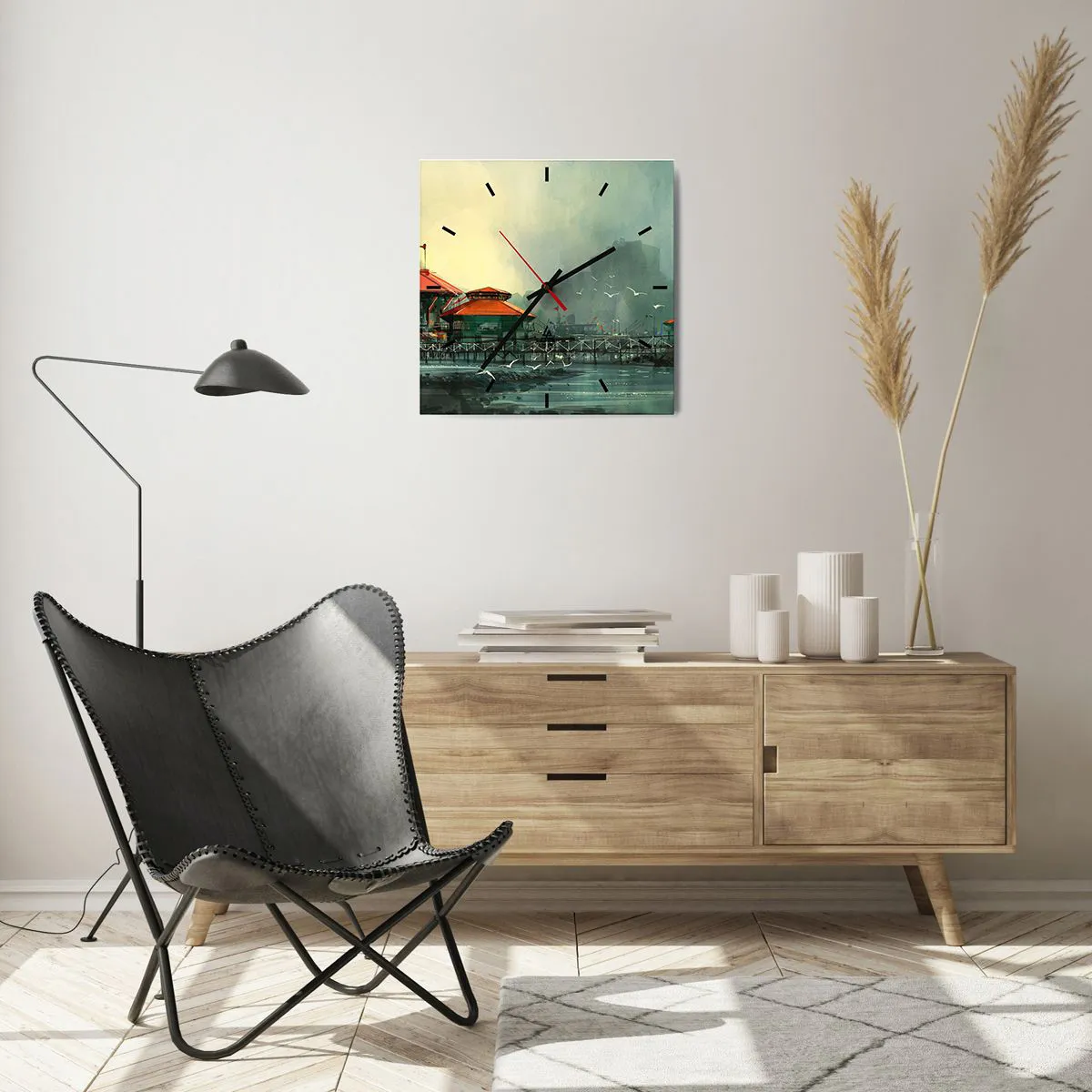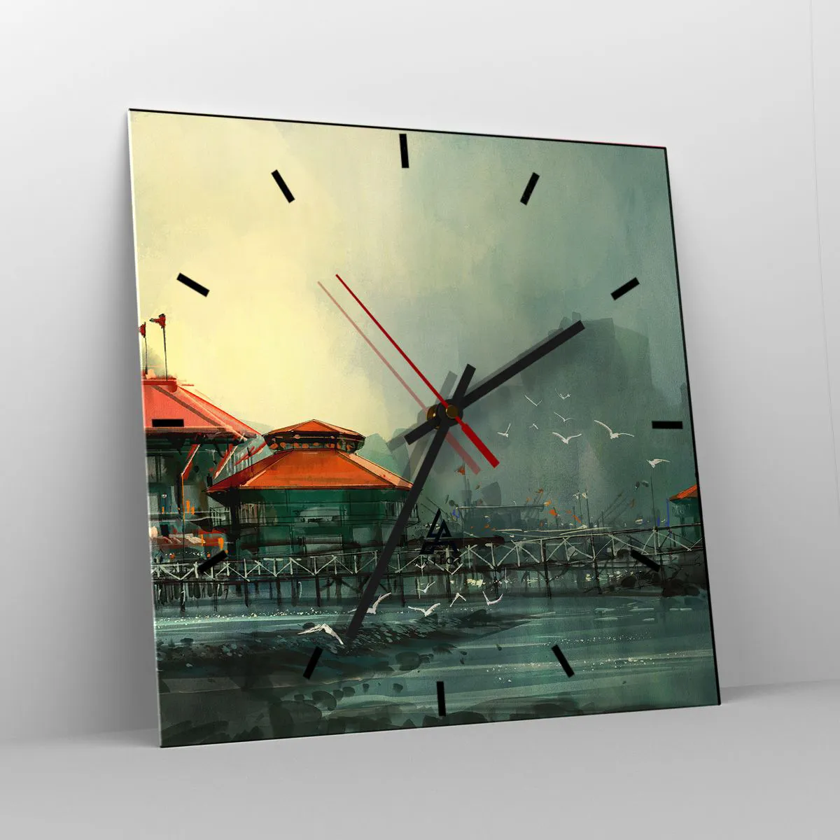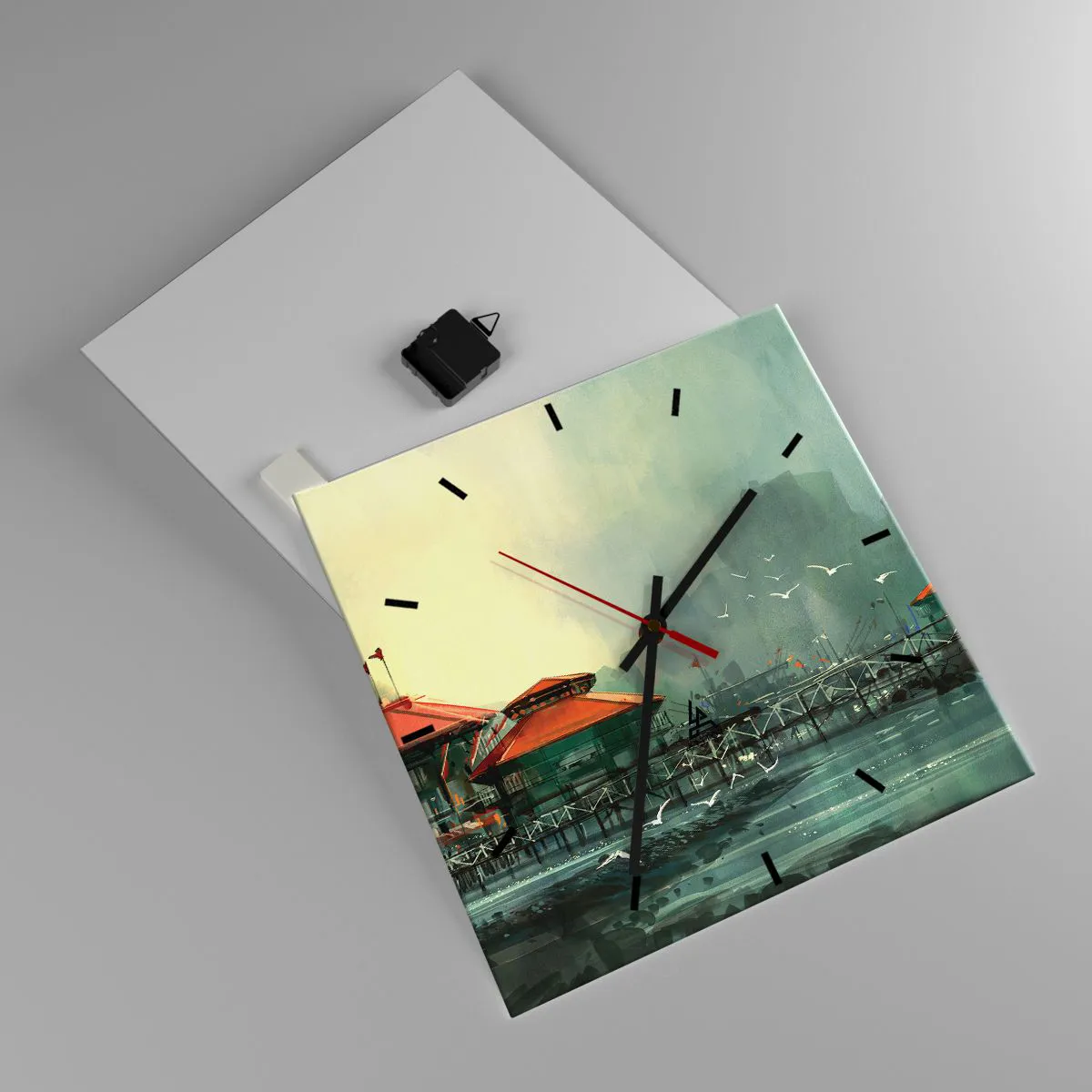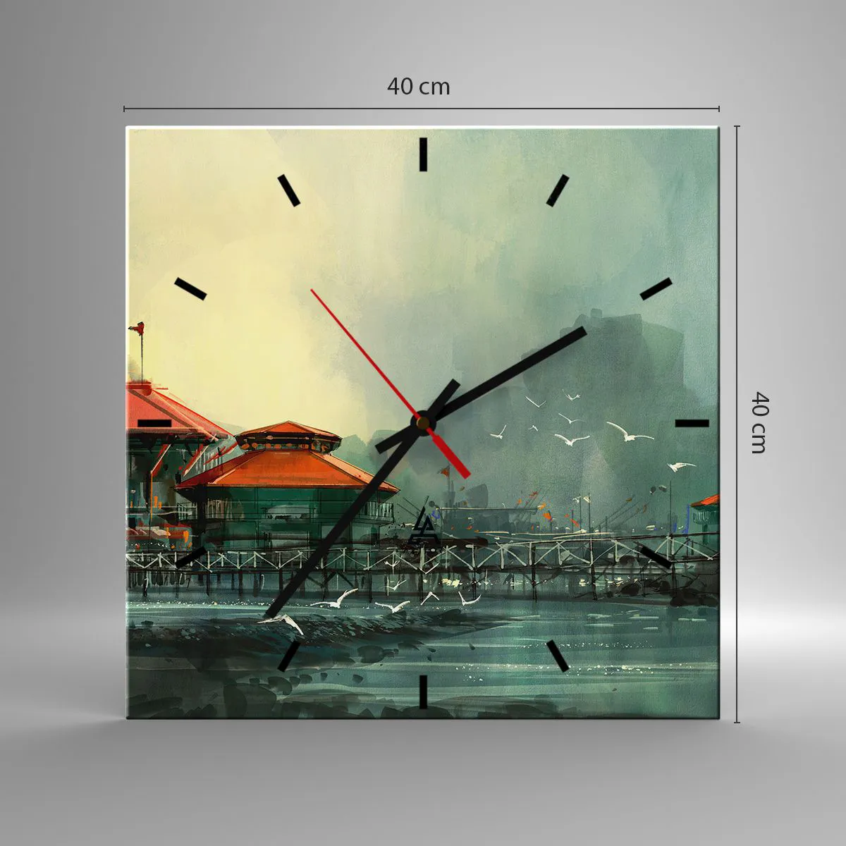 Zegar ścienny - Słotny dzień w porcie - 40x40 cm