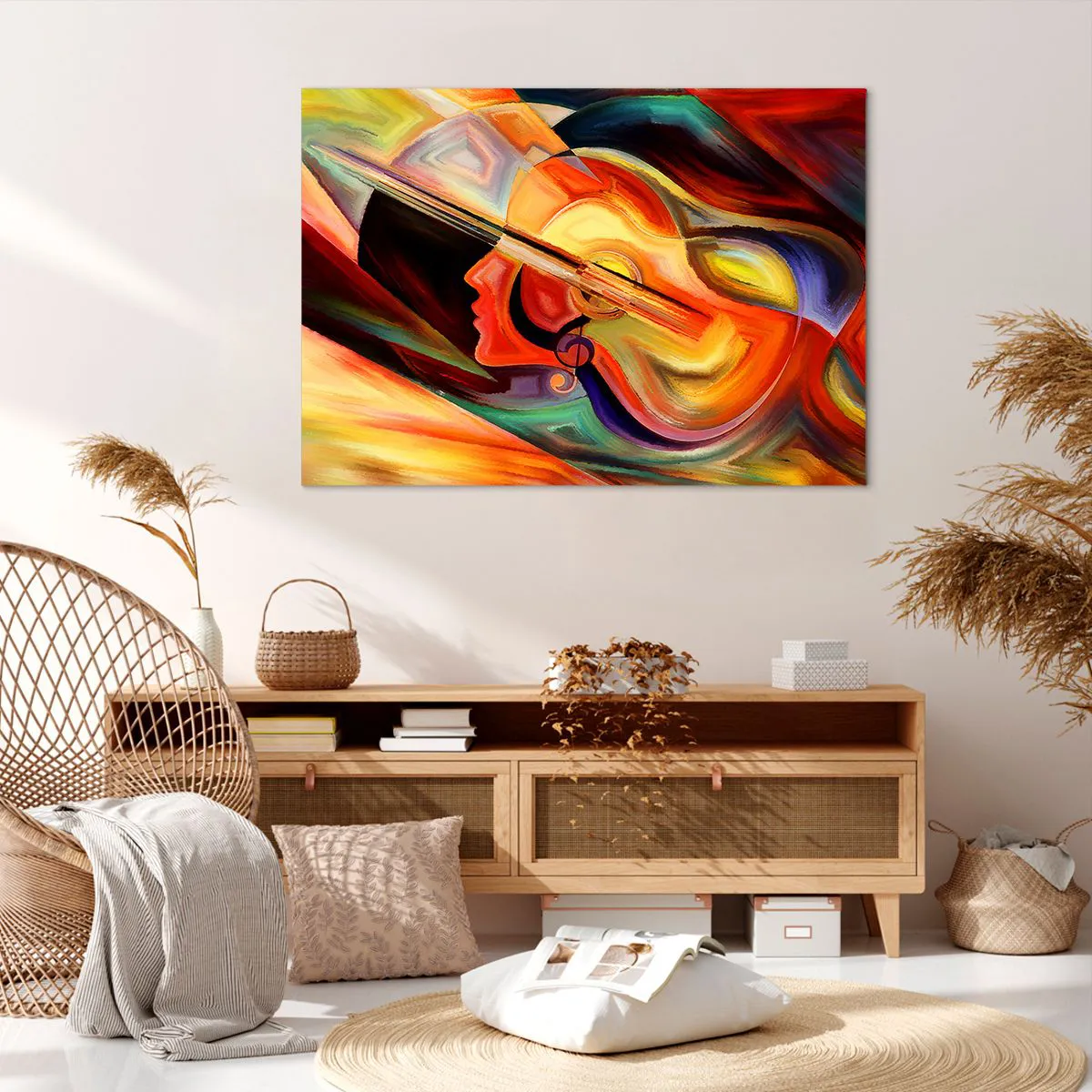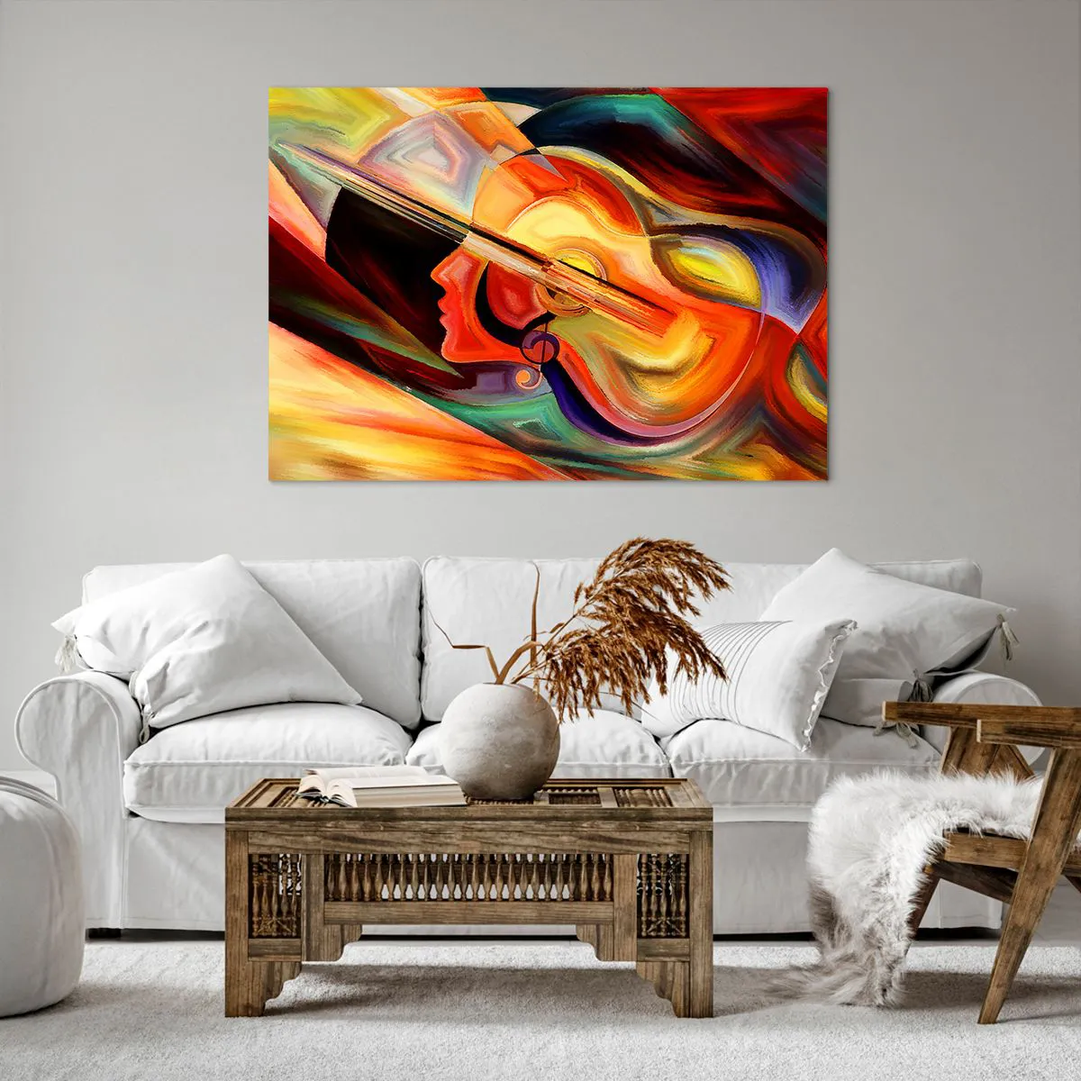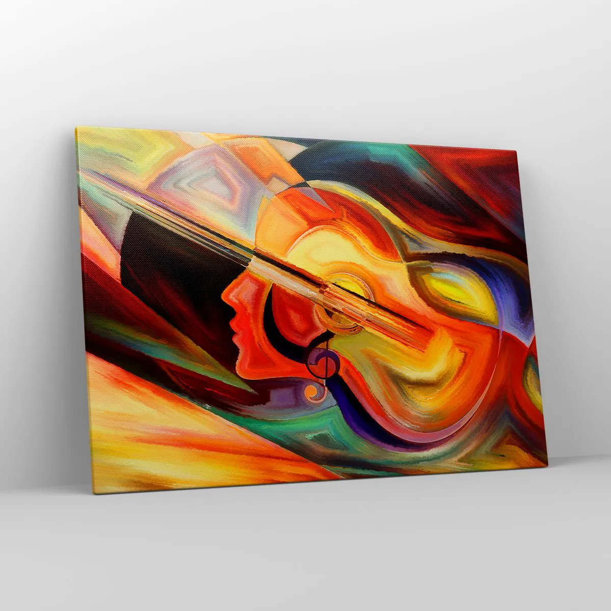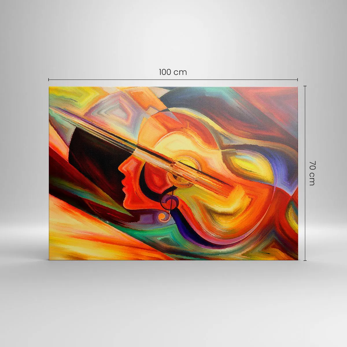 Obraz na płótnie - Kolorowa abstrakcja inspirowana muzyką i gitarą - 100x70cm - Wszystko gra - Nowoczesna dekoracja ścienna do salonu, kuchni i sypialni ARTTOR