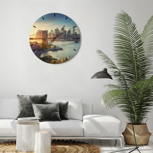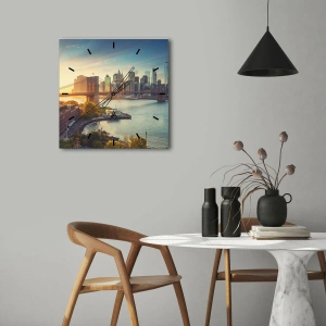 - Zegar z widokiem na most Brooklyn i panoramę miasta o zachodzie słońca. Idealny dla miłośników nowoczesnej elegancji i inspirujących widoków.