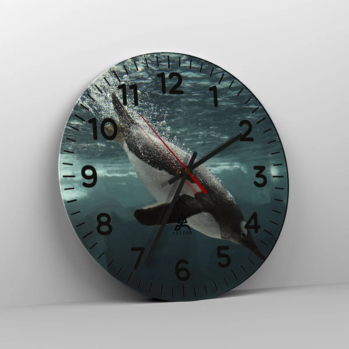 Zegar wykonany jest przy zastosowaniu nowoczesnych technologii druku, które gwarantują zachowanie naturalnych barw jak i wysokie nasycenie kolorów. Produkcja zegarów na szkle odbywa się wieloetapowo. Wysokiej jakości wydruk oraz dwie warstwy zabezpieczające poddawane są procesowi termicznego połączenia ze szkłem. Wykorzystujemy w tym celu innowacyjną technologię pieców do laminacji szkła w środowisku próżni.