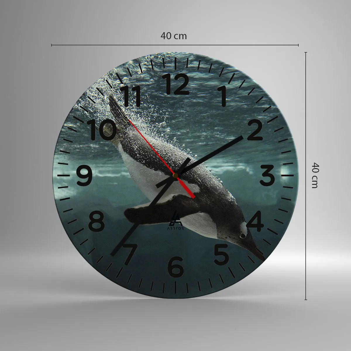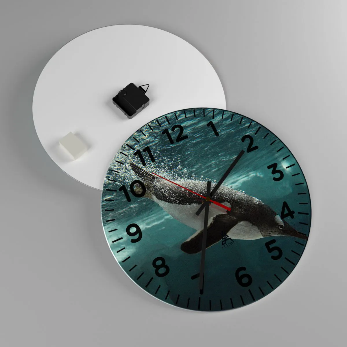 Zegar wykonany jest z bezpiecznego szkła o grubości 4mm. Technologia wykonania zegara jest zgodna z klasą bezpieczeństwa 2B2 według normy PN-EN 12600:2004, która gwarantuje wytrzymałość na uderzenia. Zegar na szkle jest gotowy do powieszenia – posiada metalową zawieszkę zamocowaną z tyłu zegara oraz piankowy dystans regulujący równomierny odstęp zegara od ściany. Zegar posiada cichy mechanizm płynący zasilany baterią 1,5V - bateria AA (bateria nie jest umieszczana w zestawie).