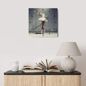 Zegar wykonany jest z bezpiecznego szkła o grubości 4mm. Technologia wykonania zegara jest zgodna z klasą bezpieczeństwa 2B2 według normy PN-EN 12600:2004, która gwarantuje wytrzymałość na uderzenia. Zegar na szkle jest gotowy do powieszenia – posiada metalową zawieszkę zamocowaną z tyłu zegara oraz piankowy dystans regulujący równomierny odstęp zegara od ściany. Zegar posiada cichy mechanizm płynący zasilany baterią 1,5V - bateria AA (bateria nie jest umieszczana w zestawie).