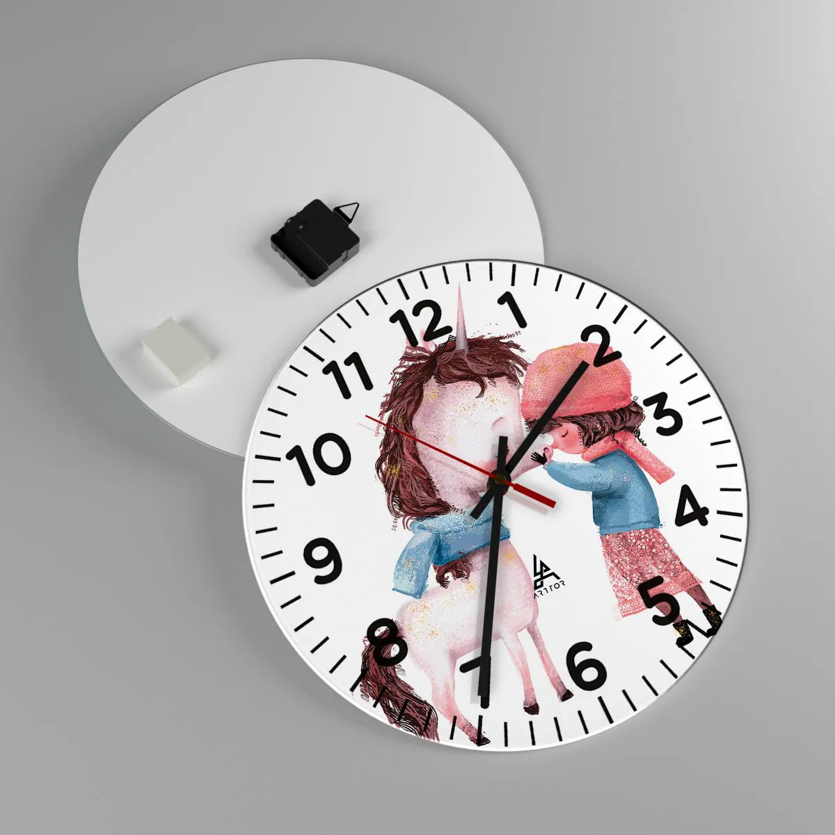 Zegar wykonany jest z bezpiecznego szkła o grubości 4mm. Technologia wykonania zegara jest zgodna z klasą bezpieczeństwa 2B2 według normy PN-EN 12600:2004, która gwarantuje wytrzymałość na uderzenia. Zegar na szkle jest gotowy do powieszenia – posiada metalową zawieszkę zamocowaną z tyłu zegara oraz piankowy dystans regulujący równomierny odstęp zegara od ściany. Zegar posiada cichy mechanizm płynący zasilany baterią 1,5V - bateria AA (bateria nie jest umieszczana w zestawie).