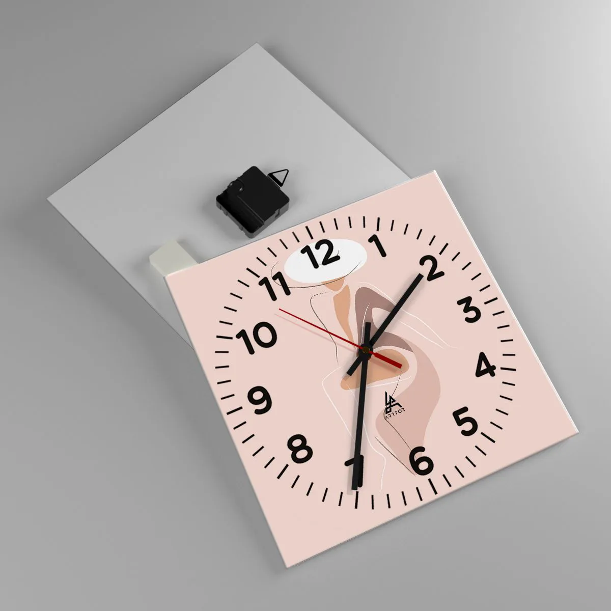 Zegar wykonany jest z bezpiecznego szkła o grubości 4mm. Technologia wykonania zegara jest zgodna z klasą bezpieczeństwa 2B2 według normy PN-EN 12600:2004, która gwarantuje wytrzymałość na uderzenia. Zegar na szkle jest gotowy do powieszenia – posiada metalową zawieszkę zamocowaną z tyłu zegara oraz piankowy dystans regulujący równomierny odstęp zegara od ściany. Zegar posiada cichy mechanizm płynący zasilany baterią 1,5V - bateria AA (bateria nie jest umieszczana w zestawie).