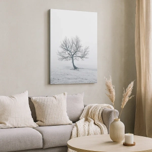 Obraz na płótnie - Samotne drzewo w zimowej mgle na pustym polu - 120x80cm - Przeciw nicości - Nowoczesna dekoracja ścienna do salonu, kuchni i sypialni ARTTOR