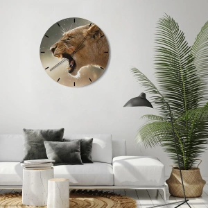 Zegar ścienny - Portret ryczącej lwicy w naturalnym świetle - 30x30cm - Spróbuj nie posłuchać - Nowoczesna dekoracja ścienna do salonu i sypialni ARTTOR
