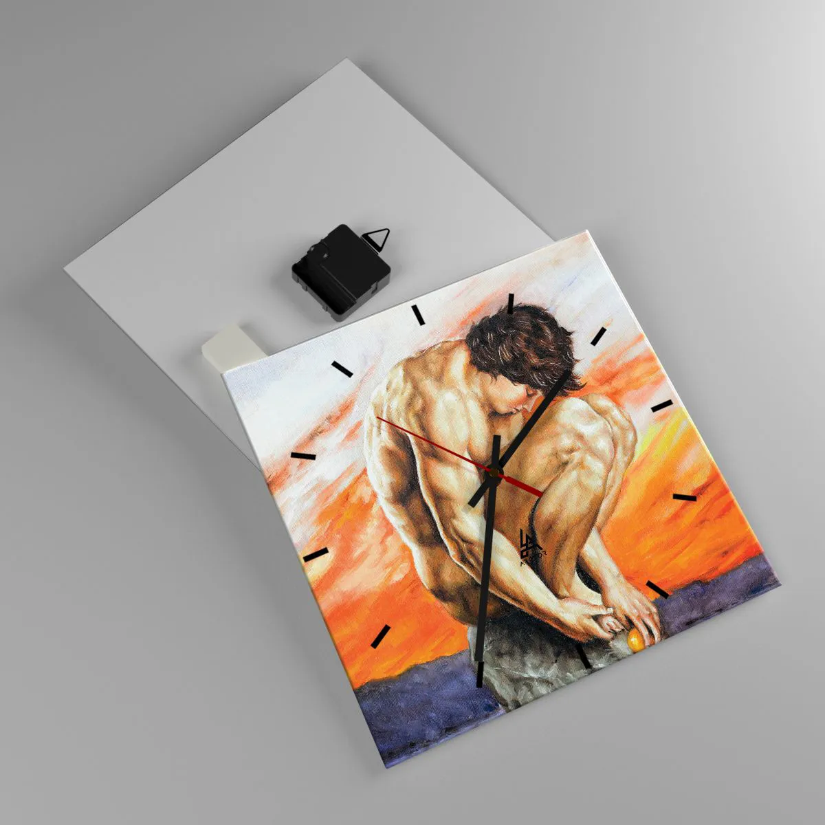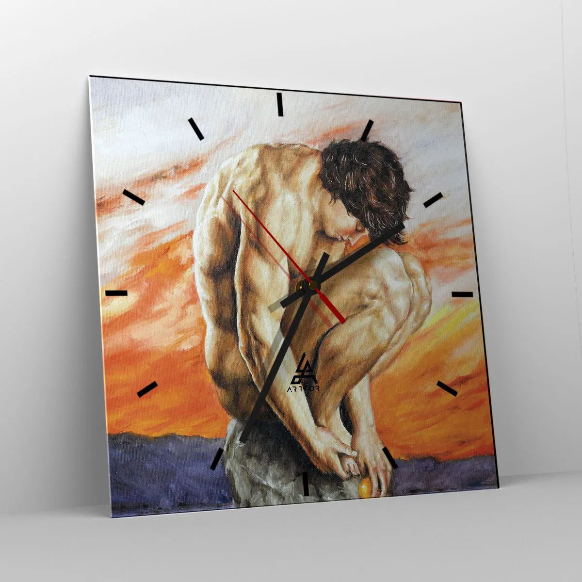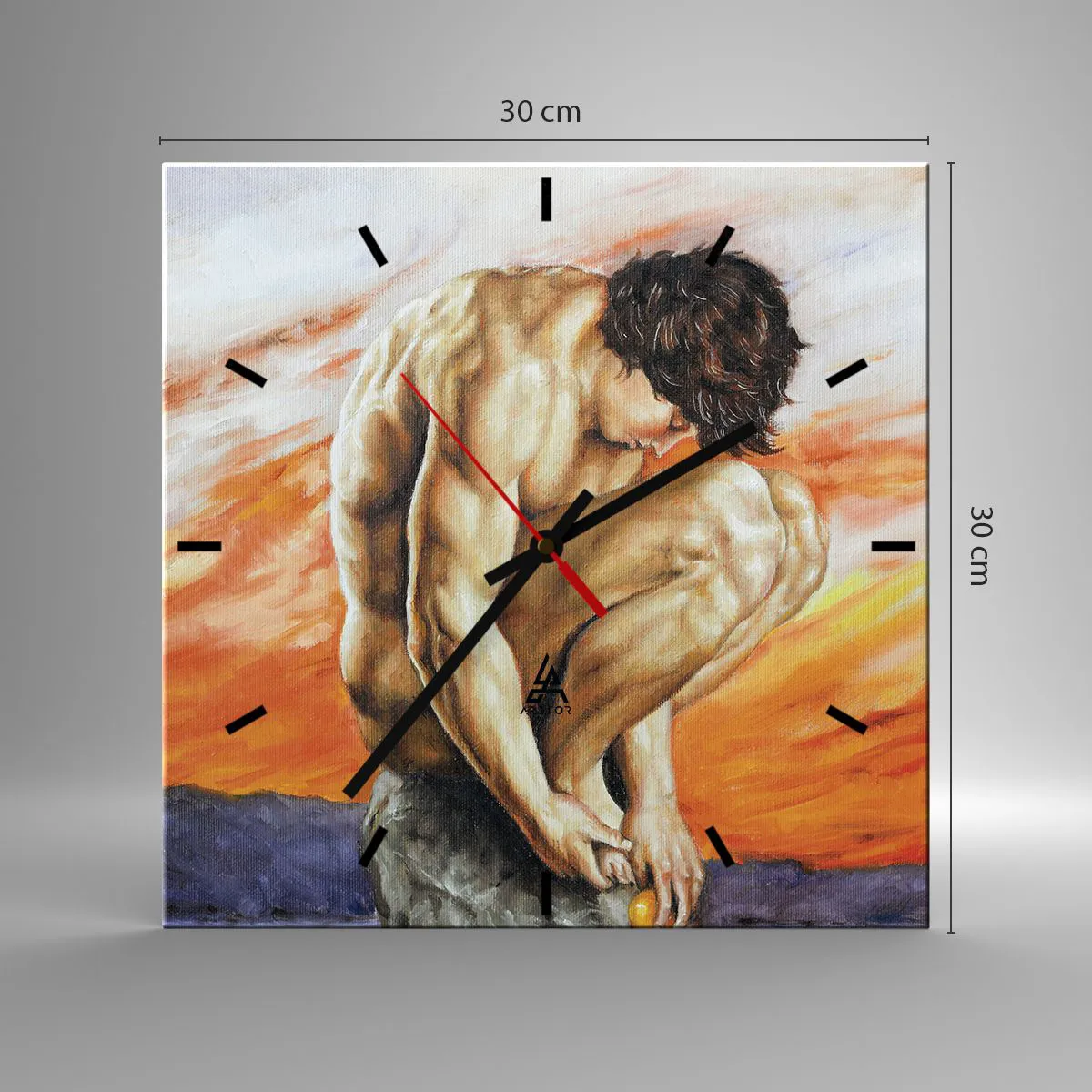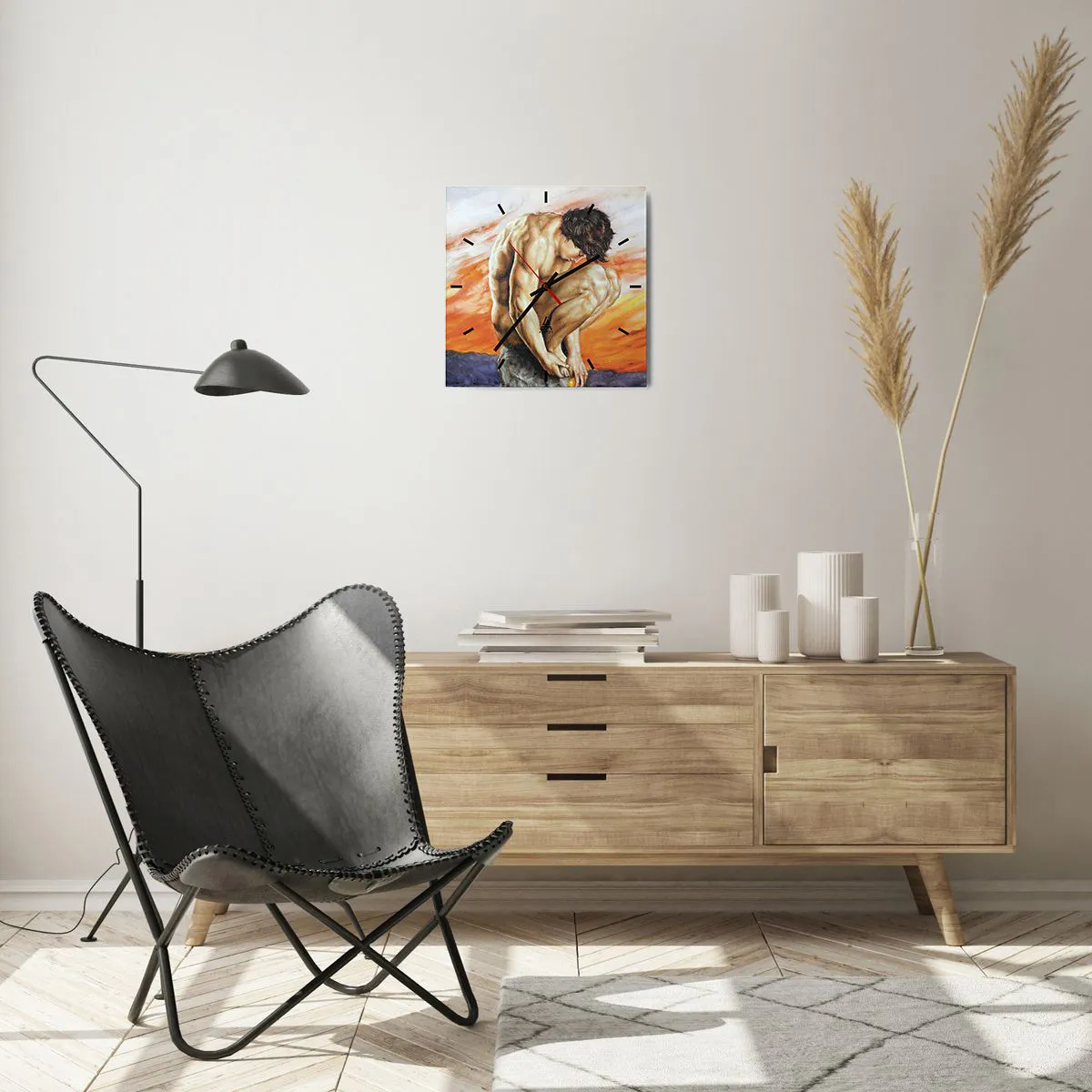 Zegar ścienny - Mężczyzna w zamyśleniu na tle zachodu słońca - 30x30cm - Zatopiony w sobie - Nowoczesna dekoracja ścienna do salonu i sypialni ARTTOR