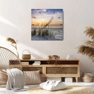 Zegar ścienny - Piękny krajobraz plaży o zachodzie słońca z trawami w tle - 30x30cm - Popatrz, pomyśl, poczuj - Nowoczesna dekoracja ścienna do salonu, kuchni i sypialni ARTTOR