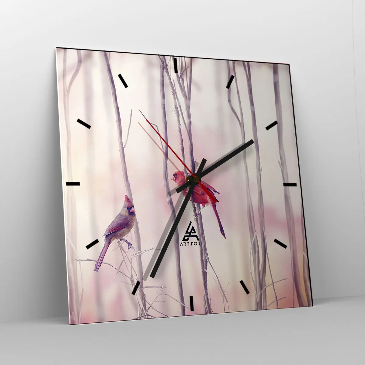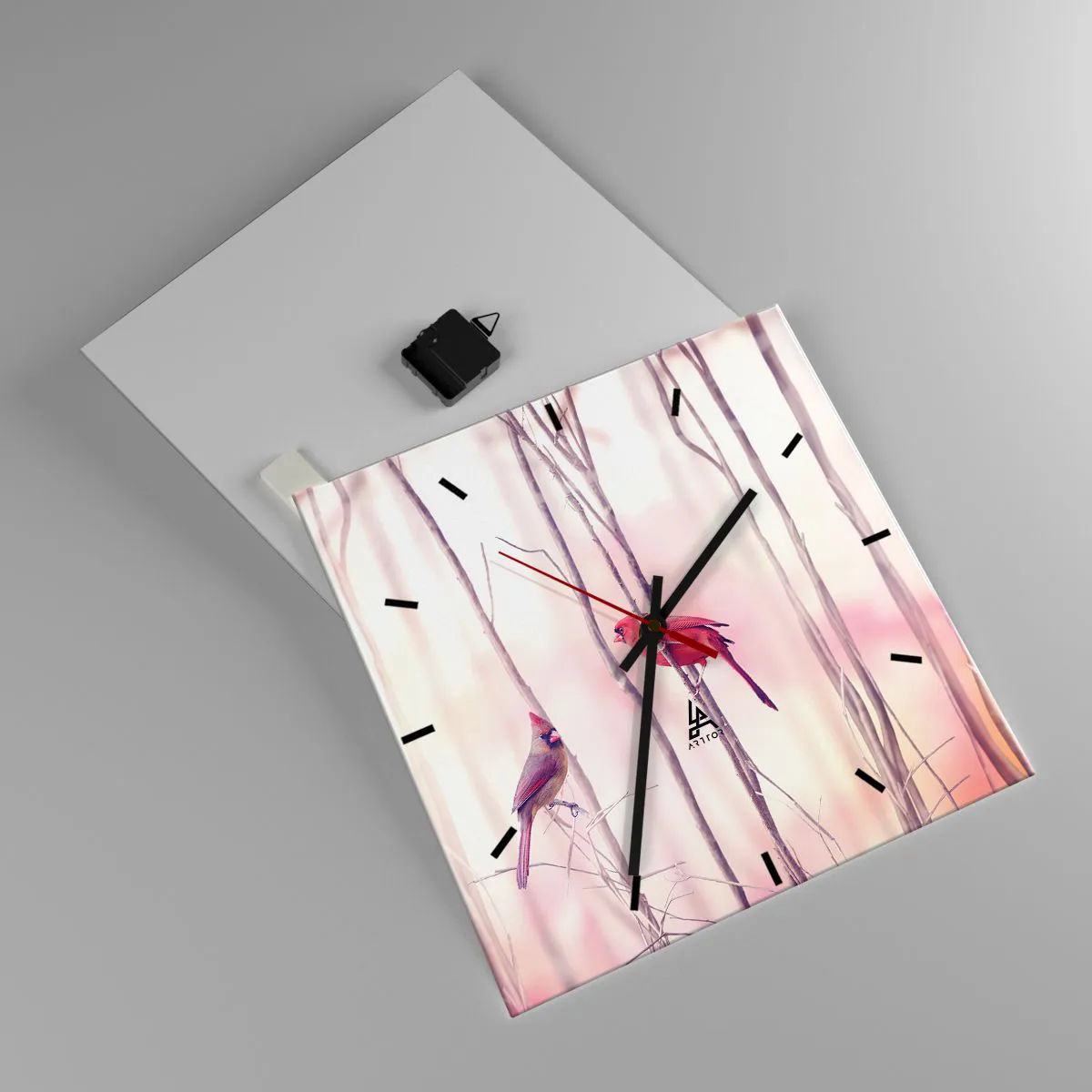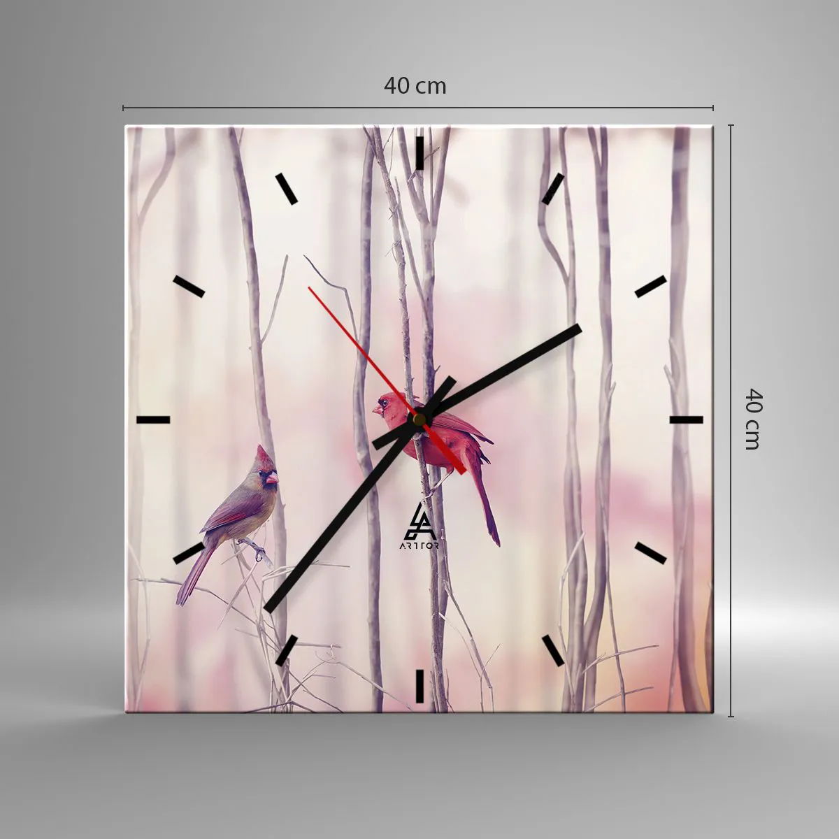 Zegar ścienny - Opowieść różowego lasu - 40x40 cm