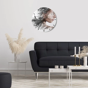 Zegar ścienny - Duch lasu - Artystyczny profil kobiety z motywem gałęzi i ptaków