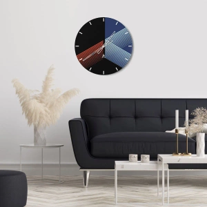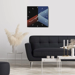 Zegar ścienny - Geometryczne linie w odcieniach czerwieni i błękitu - 30x30cm - Prosta historia - Nowoczesna dekoracja ścienna do salonu i sypialni ARTTOR