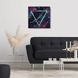 Zegar ścienny - Neonowy trójkąt w otoczeniu tropikalnych liści w ciemnych barwach - 30x30cm - Ogród w stylu disco - Nowoczesna dekoracja ścienna do salonu i sypialni ARTTOR