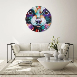 - Zegar ścienny 30x30 cm na szkle z kolorowym portretem kota w stylu malarskim. Kompozycja pełna barw i ekspresji – od fioletu po turkus i pomarańcz. Idealna do wnętrz nowoczesnych, artystycznych oraz dziecięcych.