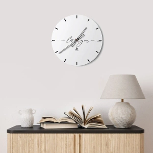 Zegar ścienny - Czarno na białym - Minimalistyczny biały zegar z napisem love you