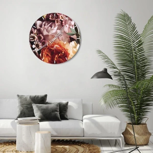 Zegar ścienny - Otulone pięknem - Zbliżenie na kompozycję kwiatową z różami i liśćmi